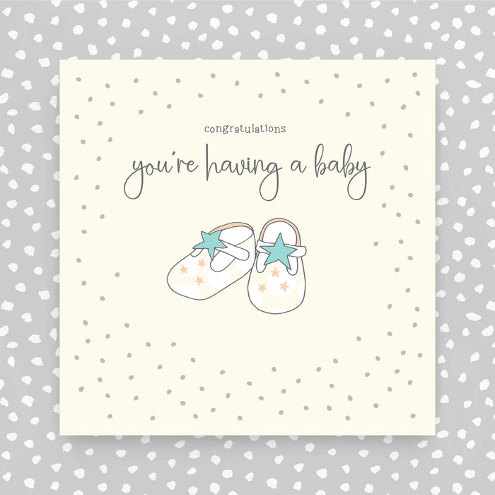 You're having a baby greeting card. Foiled, hand finished with pearl embellishments and supplied with a luxury envelope.
