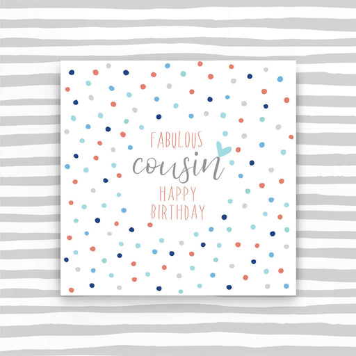 Fabulous Cousin. Printed on luxury board, embossed and foiled. Supplied with a luxury envelope. Printed in the UK on high quality luxury board fr...