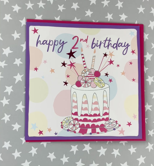 2nd Birthday Girl. Foiled with silver. Supplied with a pink envelope. Printed in the UK on high quality luxury board from renewable sources Size: 1...
