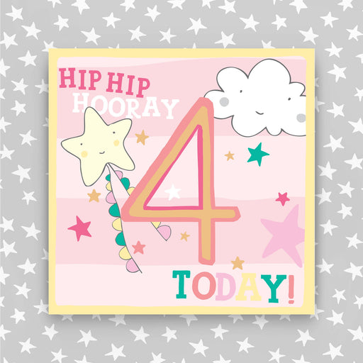 Girl Aged 4 Card. Supplied with a matching envelope. Printed with bright and fluorescent inks in the UK on high quality luxury board from renewa...