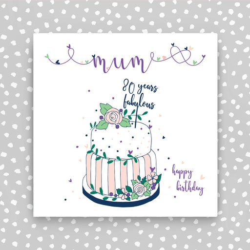 Mum 80th Birthday Card. Printed on luxury board, hand-finished with glitter and pearls. Supplied with an luxurious pearlescent envelope. Printed in...