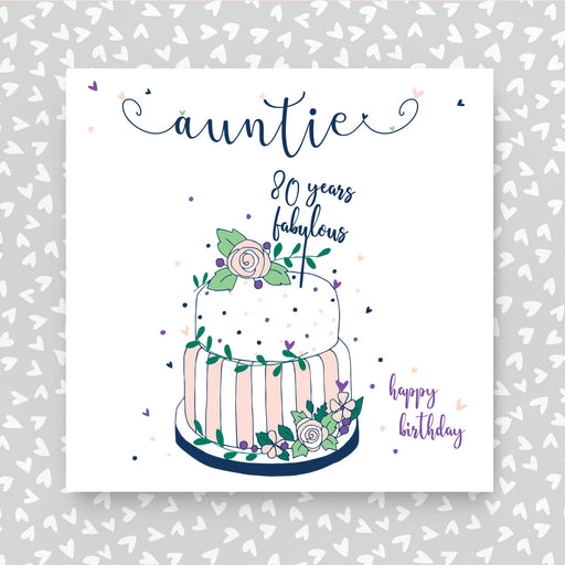 Auntie 80th Birthday Card. Printed on luxury board, hand-finished with glitter. Supplied with an luxurious pearlescent envelope. Printed in the UK ...