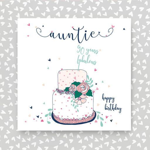 Auntie 90th Birthday Card. Printed on luxury board, hand-finished with glitter. Supplied with an luxurious pearlescent envelope. Printed in the UK ...