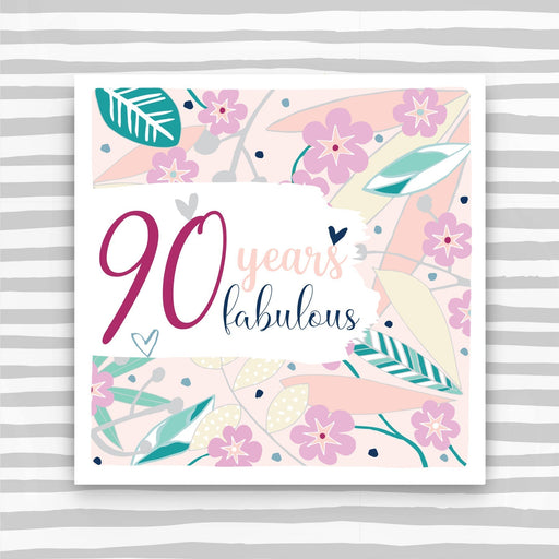 90th Female Birthday Card. Foiled and Embossed Supplied with a kraft envelope. Printed in the UK on high quality luxury board from renewable sour...