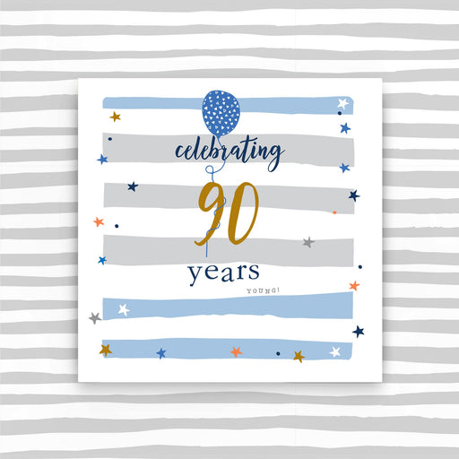Celebrating 90 years male. Printed on luxury board, embossed and foiled. Supplied with a luxury envelope. Printed in the UK on high quality luxur...