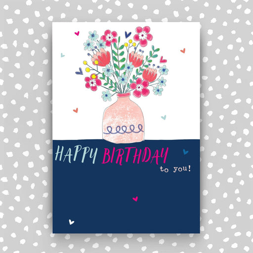Happy Birthday Card - Vase of flowers. Hand finished with glitter Sealed with a belly band or Supplied with a kraft envelope. Printed in the UK on ...