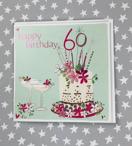 60th Birthday Card. Printed on luxury board, hand-finished with glitter and pearls. Supplied with an luxurious pearlescent envelope. Printed in the...