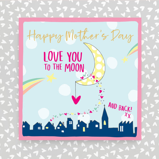 Happy Mother's Day Greeting Card - Love you to Moon and back xx. Foiled and supplied with a coloured envelope. Printed in the UK on high quality...