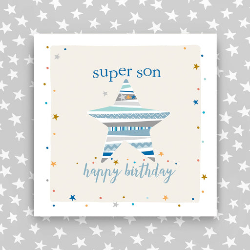 Super Son - Happy Birthday. Foiled and Embossed. Supplied with a grey envelope. Printed in the UK on high quality luxury board from renewable sou...