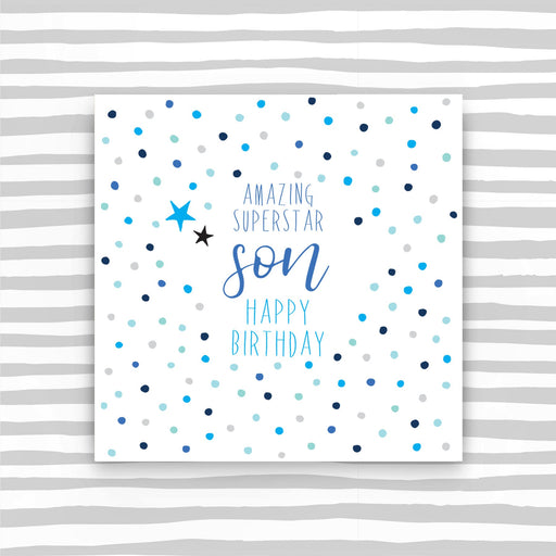 Original price £2.50 - Original price £2.50Original price £2.50£2.50£2.50 - £2.50Current price £2.50| /Amazing Superstar Son Happy Birthday. Printed on luxury board, embossed and foiled. Supplied with a luxury envelope. Printed in the UK on high qu...