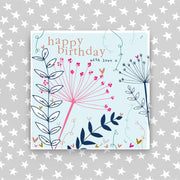 Happy Birthday with love. Printed on luxury board, embossed and foiled.