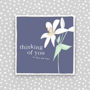 Thinking of you - thinking of you at this sad time. Printed on luxury board, embossed and foiled.