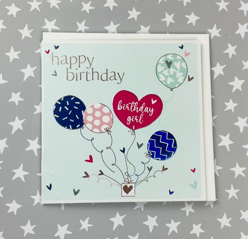 Happy Birthday - Balloons. Foiled and embossed. Supplied with an envelope.