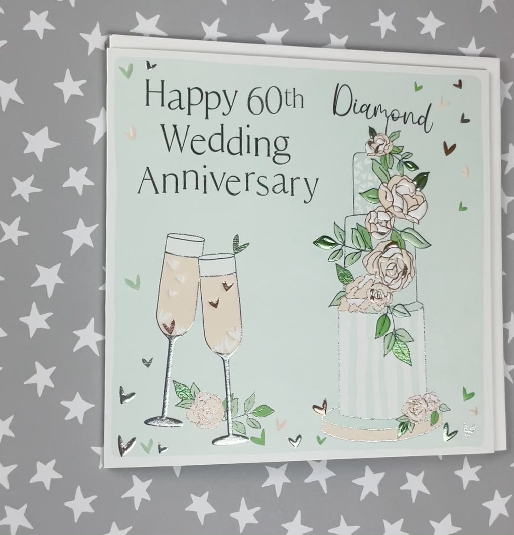60th Wedding Anniversary. Foiled and embossed. Supplied with an envelope.