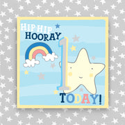 Boy Aged 1 Birthday Card. Foiled and supplied with a coloured envelope.