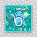Boy Aged 6 Birthday Card. Foiled and supplied with a coloured envelope.