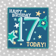 Boy Aged 17 Birthday Card. Foiled and supplied with a coloured envelope.