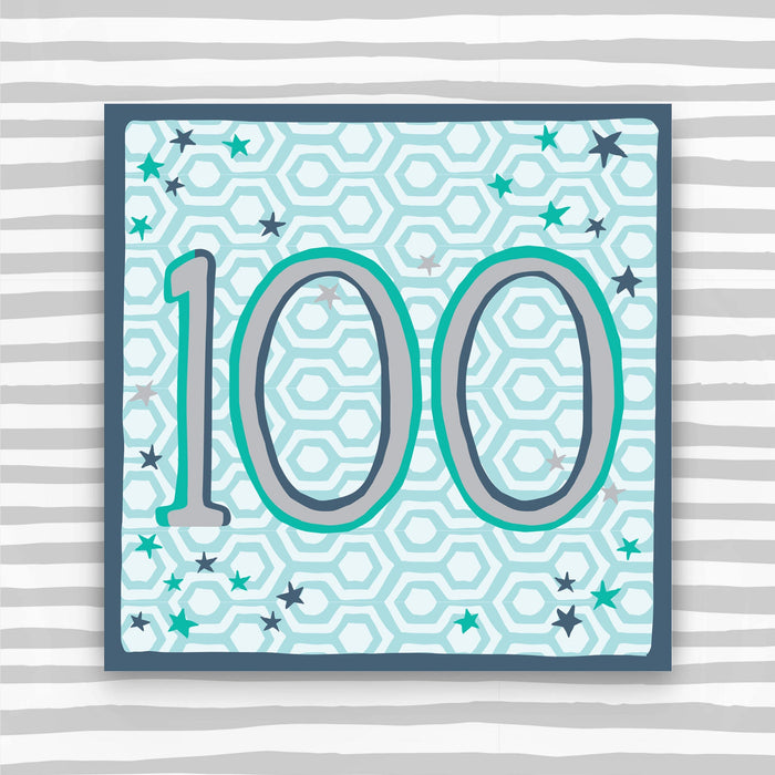 Male Aged 100 Birthday Card. Foiled and supplied with a coloured envelope.