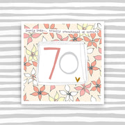 A beautiful Female 70th Birthday Card card. Printed on luxury board, embossed and foiled.