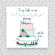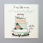 Wife 1st Wedding Anniversary Card. Printed on luxury board, hand-finished with glitter and pearls.
