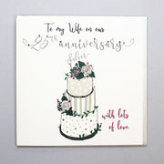 Wife 25th Wedding Anniversary Card. Printed on luxury board, hand-finished with glitter and pearls.