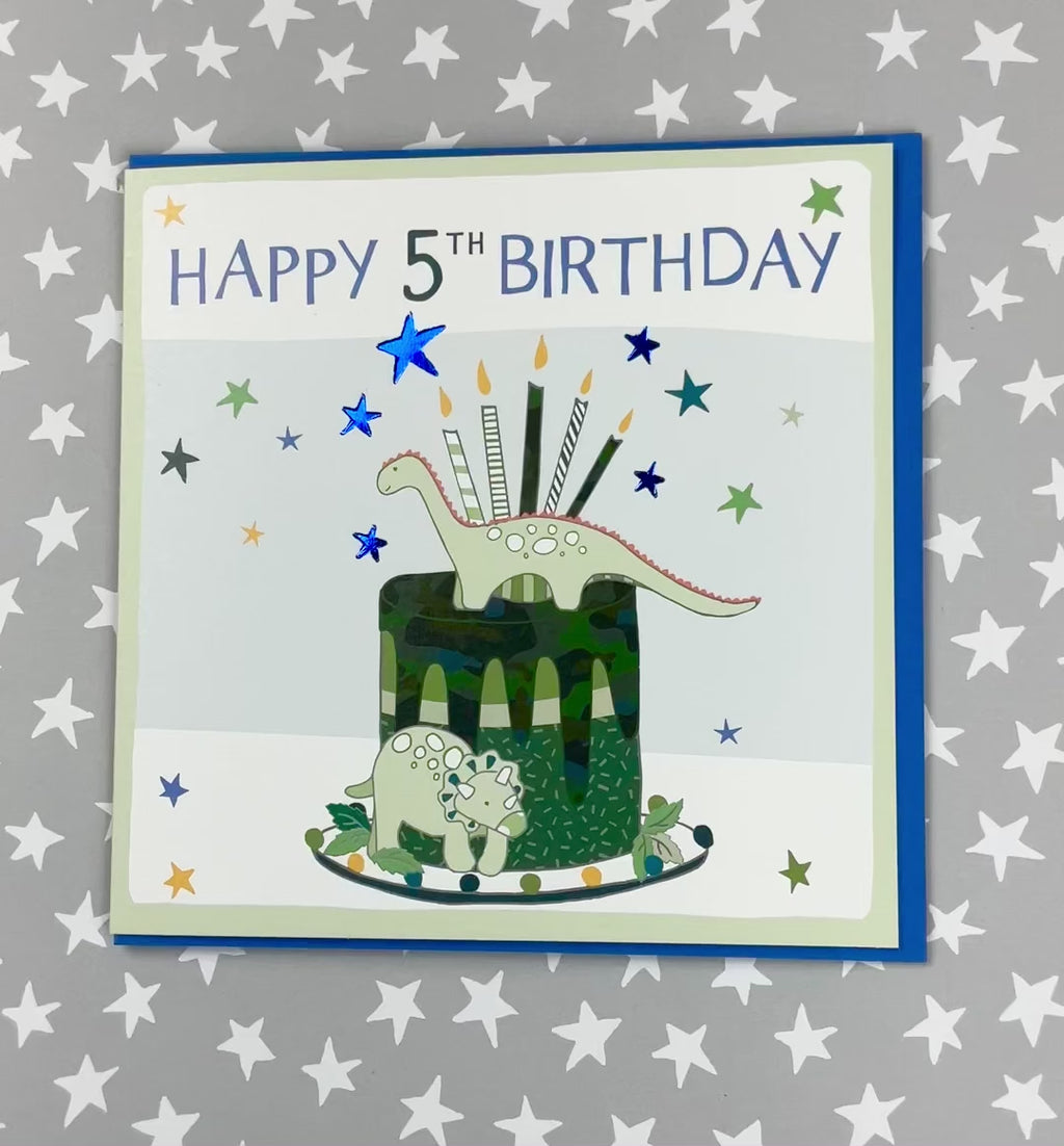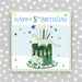 5th Birthday Boy. Foiled with silver. Supplied with a blue envelope.