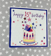 15th Birthday Girl. Foiled with silver. Supplied with a white envelope.