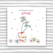Gwraig, Penblwydd Hapus (Wife, Happy Birthday). Hand-finished with embellishments.
