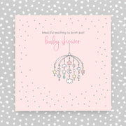 Beautiful mummy to be on your baby shower greeting card. Foiled, hand finished with pearl embellishments and supplied with a luxury envelope.