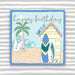 Surfing - Happy Birthday Greeting Card. Finished with foiled lettering. Supplied with an envelope.