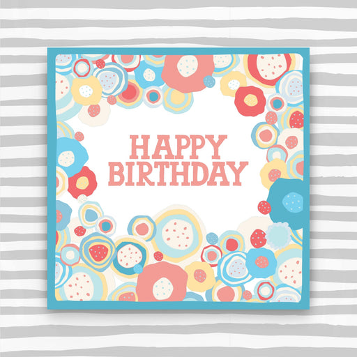 Happy Birthday - Coloured circles with blue border. Supplied Supplied with a white envelope. Printed in the UK on high quality luxury board from...