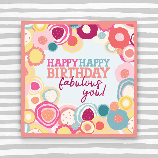 Happy Happy Birthday Card, Fabulous You - Coloured circles with peach border. Supplied Supplied with a white envelope. Printed in the UK on high...