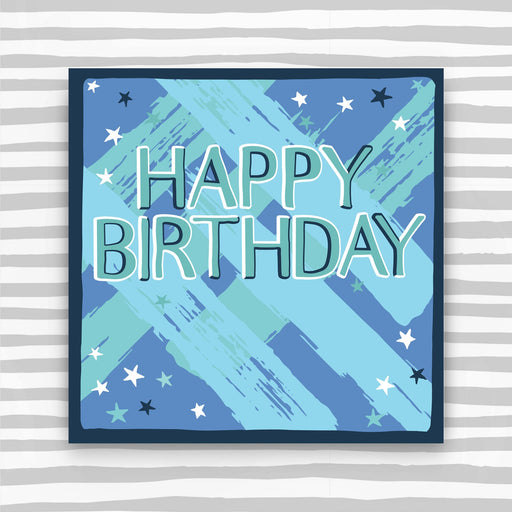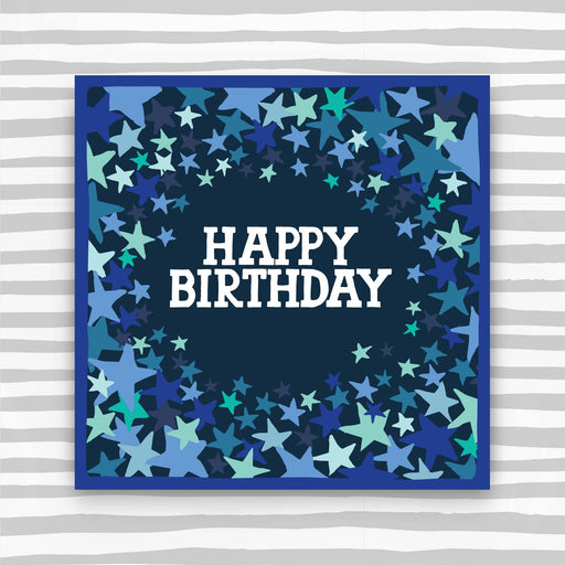 Happy Birthday Card - Blue Stars. Supplied Supplied with a white envelope. Printed in the UK on high quality luxury board from renewable sources...