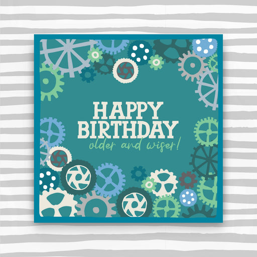 Happy Birthday Card, Older and Wiser - Green Cogs. Supplied Supplied with a white envelope. Printed in the UK on high quality luxury board from ...