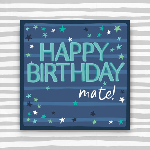 Happy Birthday - mate! Greeting card. Foiled and supplied with a coloured envelope. Printed in the UK on high quality luxury board from renewable...
