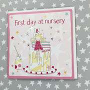 First day at nursery - Pink. Finished with silver foil. Supplied with a white envelope.