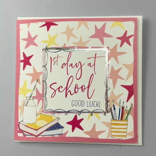1st Day at School Greeting Card - Pink Stars (TF07)