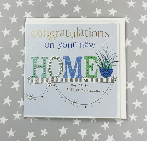 Congratulations On Your New Home. Foiled and embossed. Supplied with an envelope.