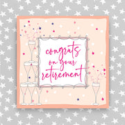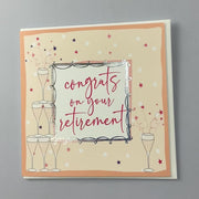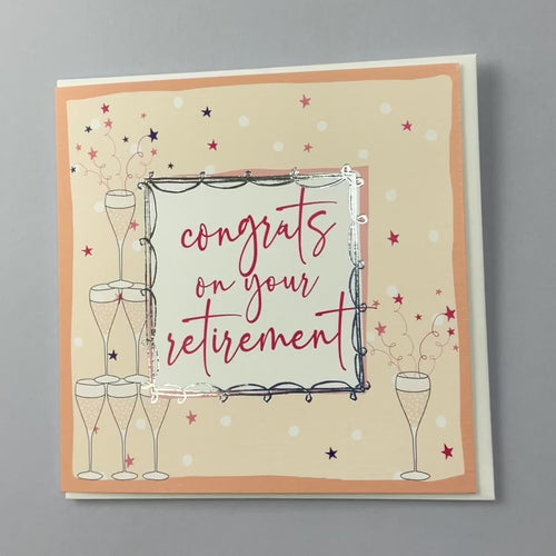 Congrats on your Retirement - Bubbles. Foiled with silver. Supplied with a white envelope.