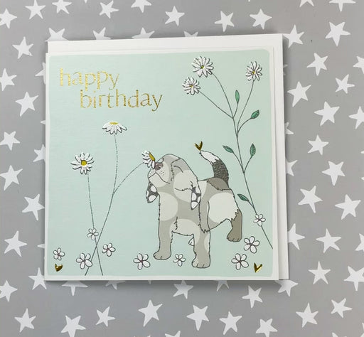 Original price £2.50 - Original price £2.50Original price £2.50£2.50£2.50 - £2.50Current price £2.50| /Happy Birthday - Dog and Flowers. Foiled and embossed. Supplied with an envelope. Printed in the UK on high quality luxury board from renewable s...