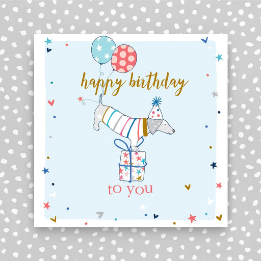 Birthday Sausage Dog. Printed on luxury board, embossed and foiled. Supplied with a coloured envelope. Printed in the UK on high quality luxury b...