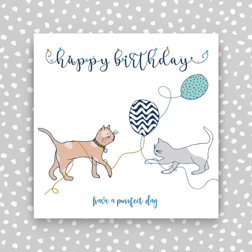 Happy Birthday Card - Cats. Foiled and Embossed Supplied with a grey envelope. Printed in the UK on high quality luxury board from renewable sour...