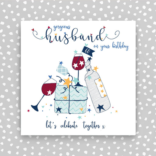 Husband 60th Birthday Card. Printed on luxury board, hand-finished with glitter and pearls. Supplied with an luxurious pearlescent envelope. Printe...