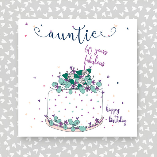 Auntie 60th Birthday Card. Printed on luxury board, hand-finished with glitter. Supplied with an luxurious pearlescent envelope. Printed in the UK ...