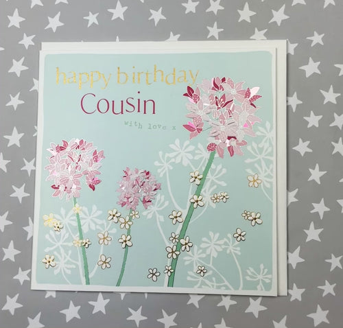 Happy Birthday Cousin Birthday Card. Foiled and embossed. Supplied Supplied with a white envelope.