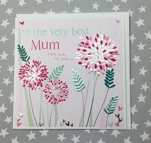 To the very best Mum Greeting Card. Foiled and embossed. Supplied Supplied with a white envelope.