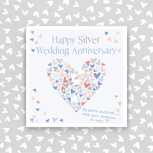 25th Wedding Anniversary. Foiled and embossed. Supplied with an envelope. Printed in the UK on high quality luxury board from renewable sources S...
