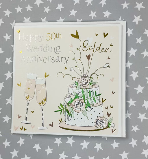 50th Wedding Anniversary. Foiled and embossed. Supplied with an envelope. Printed in the UK on high quality luxury board from renewable sources S...