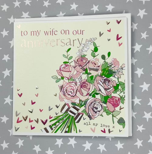 Wife Anniversary Card. Foiled and embossed, with a white envelope.