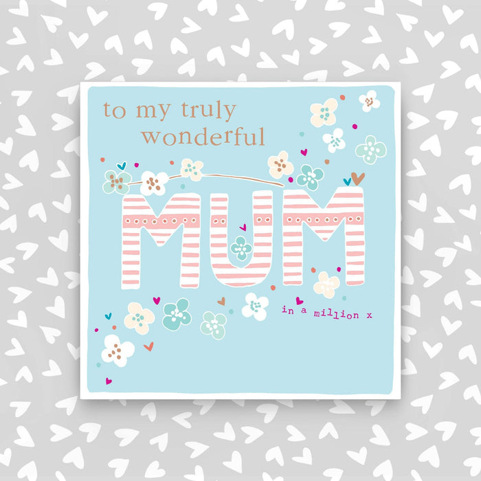 Truly Wonderful Mum in a million. Printed on luxury board, foiled and embossed.